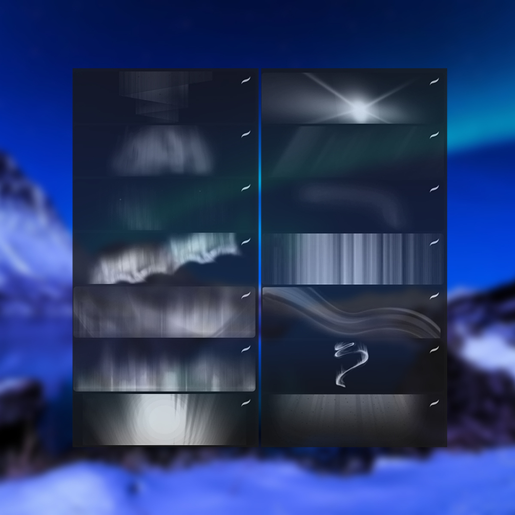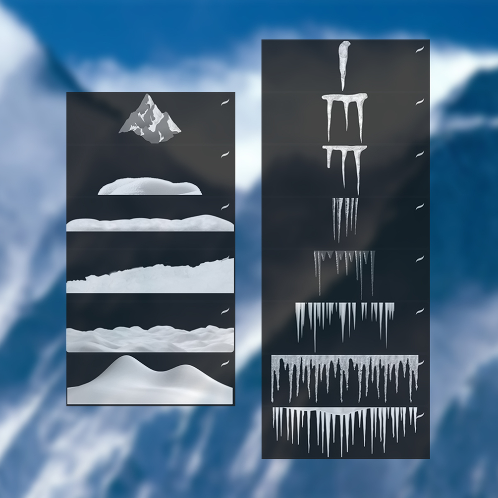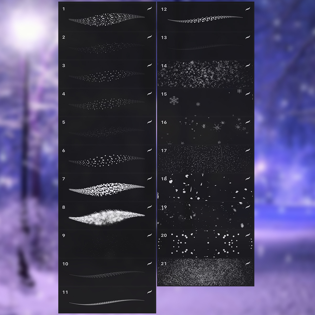 This set contains 50 brushes for Winter, they will give you realistic drawings of winter, you can paint falling snow, northern lights, icicles, snow hills!❄️