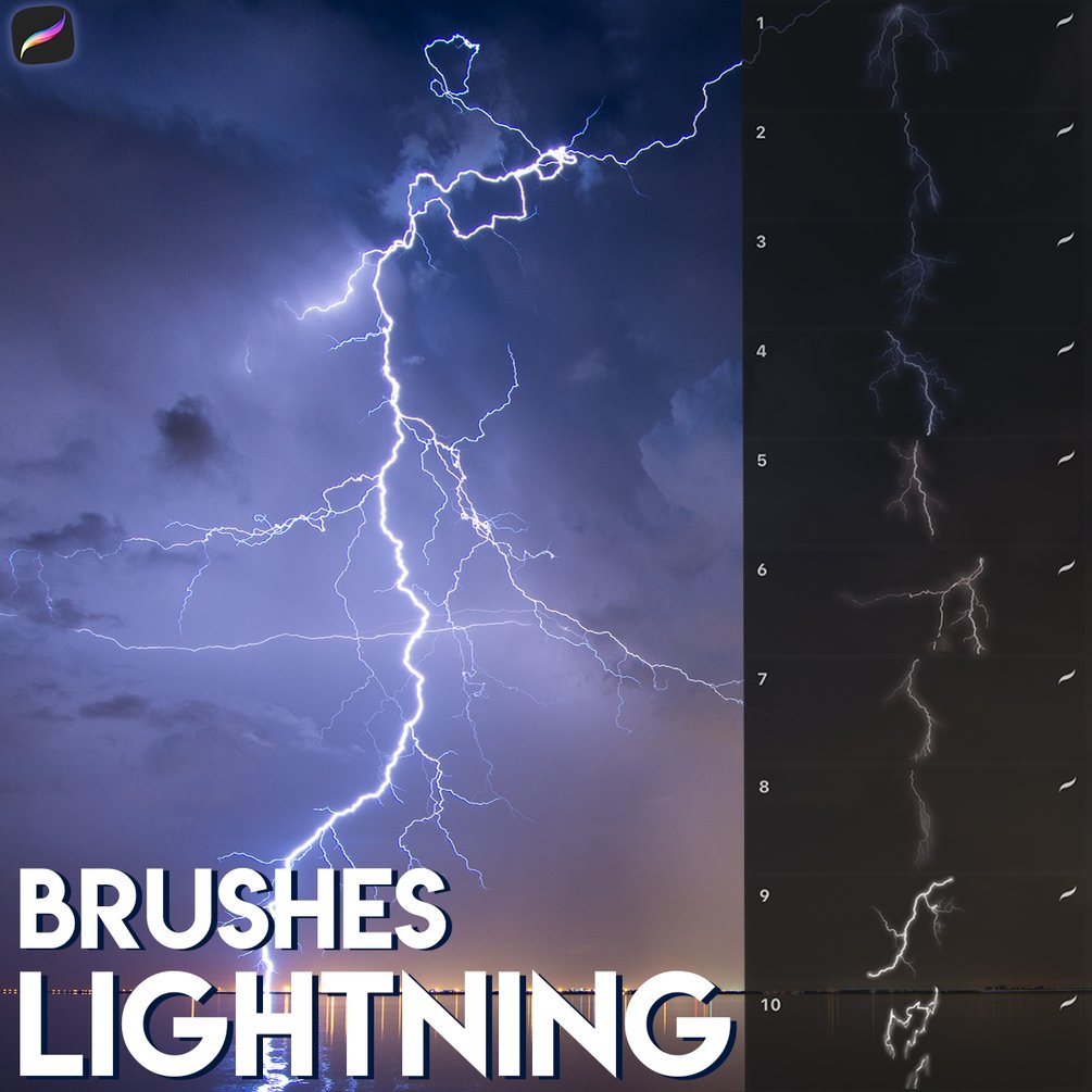 Hello, this is a free lightning brush set, this set contains 10 brushes to help you draw a thunderstorm and make your work easier☁️⚡