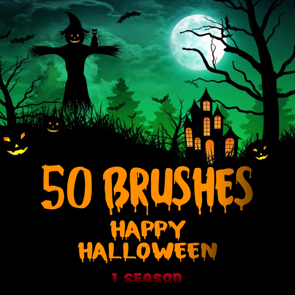 New Halloween set of 50 brushes (1 season)🎃(pumpkin, skulls, scarecrows, gravestones, etc.)